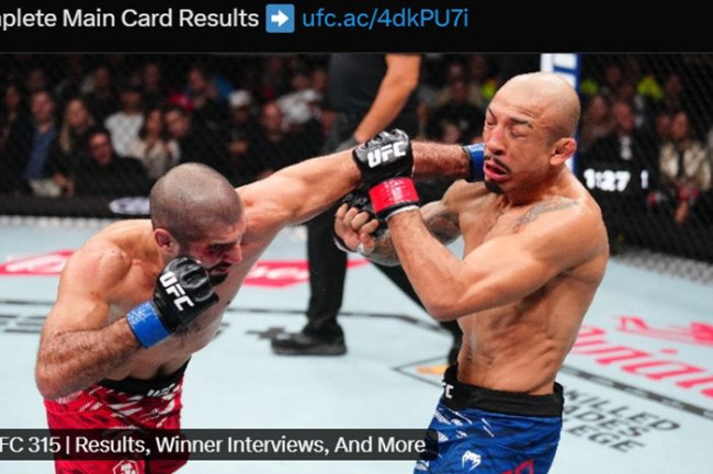 FaktahukumNTT.com, Las Vegas – UFC 315 menyajikan duel berdarah yang sulit dilupakan. Pertarungan antara Aiemann Zahabi dan Jose Aldo berubah menjadi “ronde neraka” yang menggemparkan publik MMA. Dalam tiga ronde yang brutal, kedua petarung saling melepaskan pukulan dan tendangan tanpa ampun, hingga darah membanjiri oktagon dan membuat wasit harus sigap berjaga.