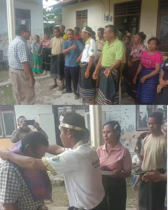 FaktahukumNTT.com, Malaka — Di balik sebuah seremoni adat yang tampak sederhana, tersimpan makna mendalam tentang cinta, penghormatan, dan kesadaran ekologis. Pada tanggal 28 Juni 2025, sebuah momentum spiritual dan budaya terpatri kuat di Desa Rabasa Haerain, Kabupaten Malaka, ketika tim teknis PT. Momen Global International, Lukas Onek Narek disambut hangat dengan ritual adat dan pengalungan selendang tenun ikat khas Timor oleh Kepala Desa Rabasa Haerain, Agustinus Nahak didampingi tiga kepala desa tetangga: Marianus Bria (Rabasa), Egidius Bria (Rabasa Hain), dan Rofinus Klau (Faloe).